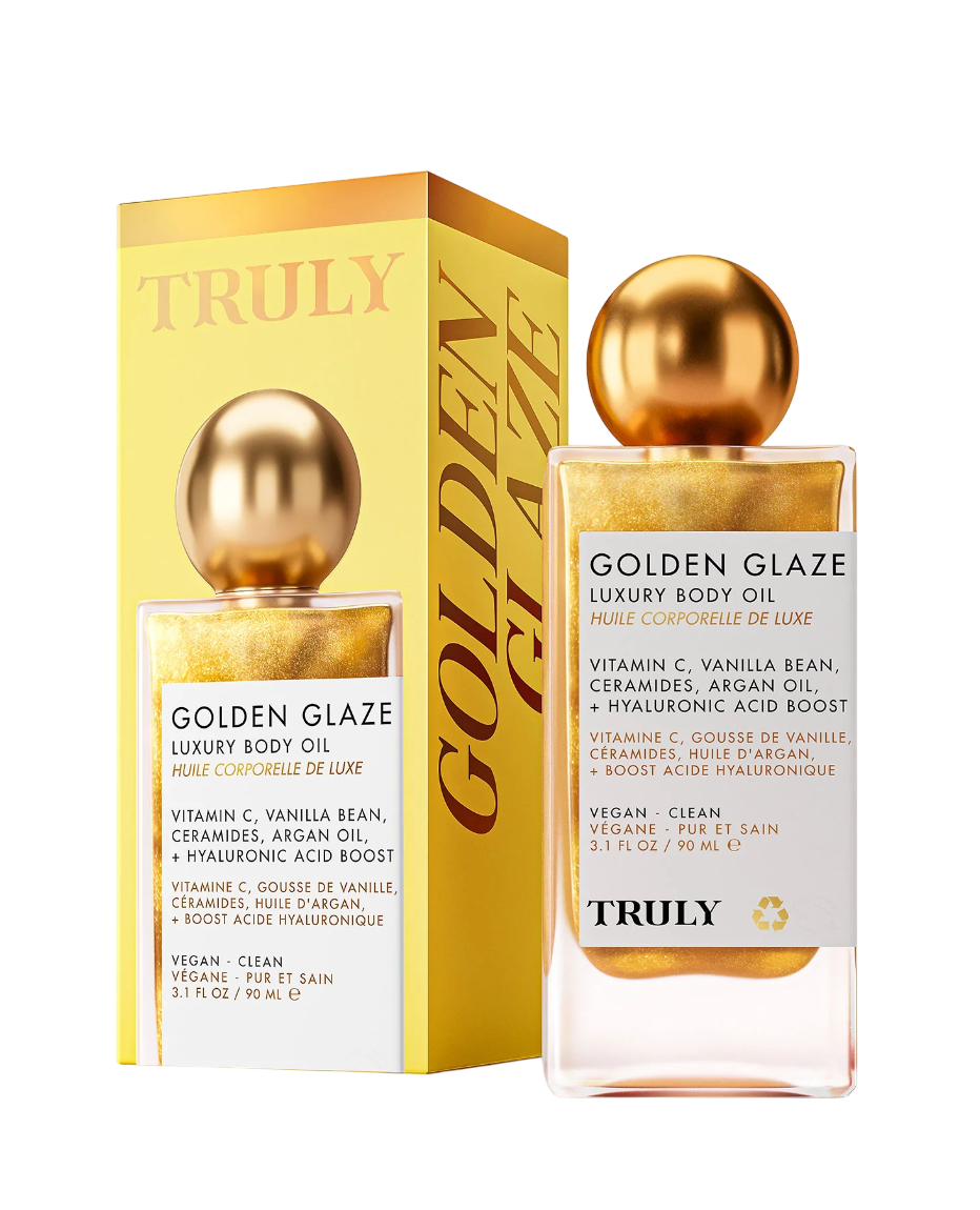 - Este aceite corporal sedoso y de deslizamiento suave se funde con la piel para brindar una luminosidad instantánea que dura todo el día.
