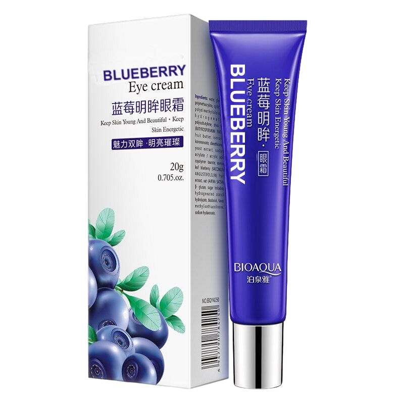 Crema para el contorno de ojos bioaqua, a base de arándanos, antiarrugas, ayuda a eliminar las bolsas debajo de los ojos, previene el envejecimiento prematuro, atenúa las líneas finas de expresión, hidrata y suaviza. Puedes usarlo en el día antes de tu maquillaje o en la noche.