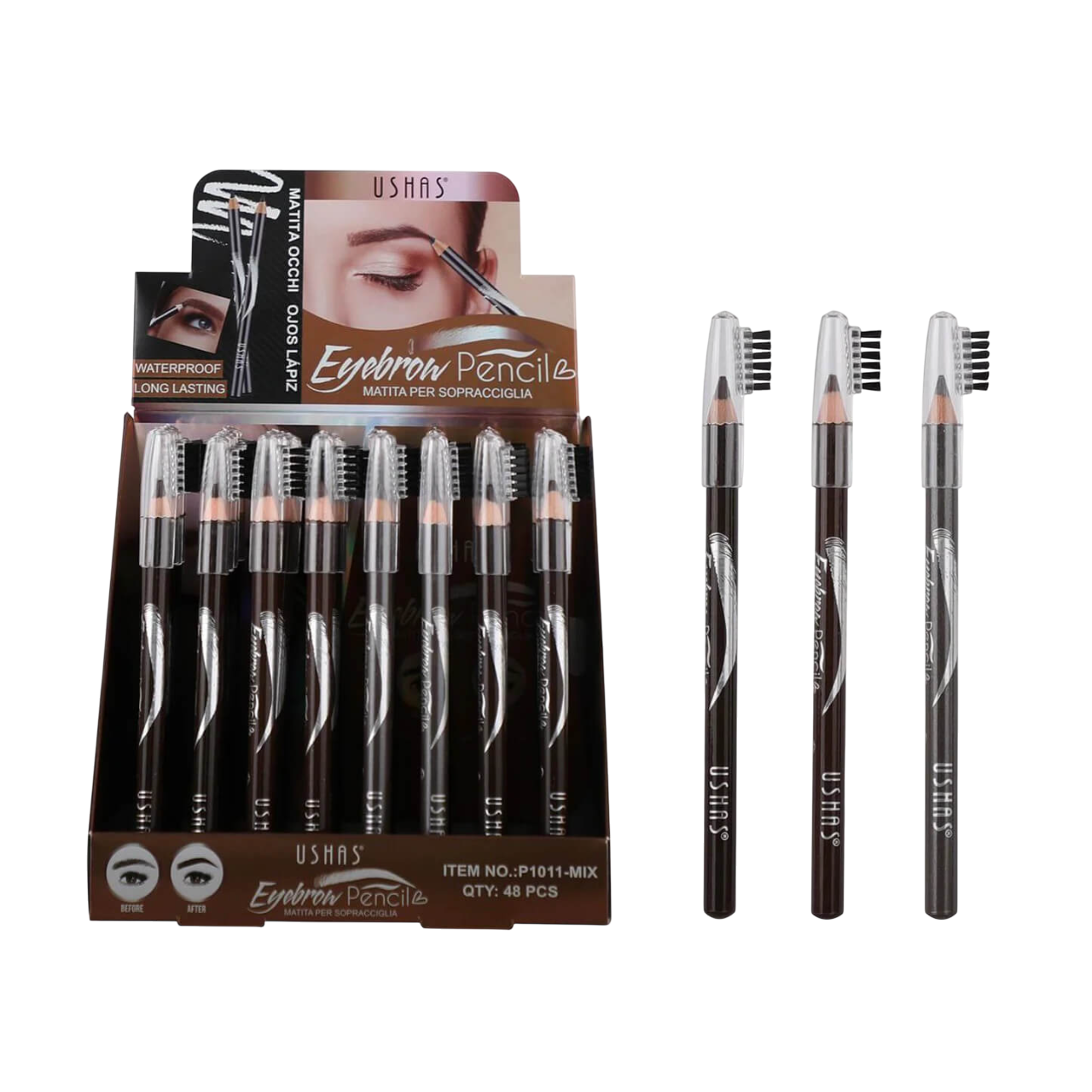 Lápiz de cejas marrón con cepillo USHAS