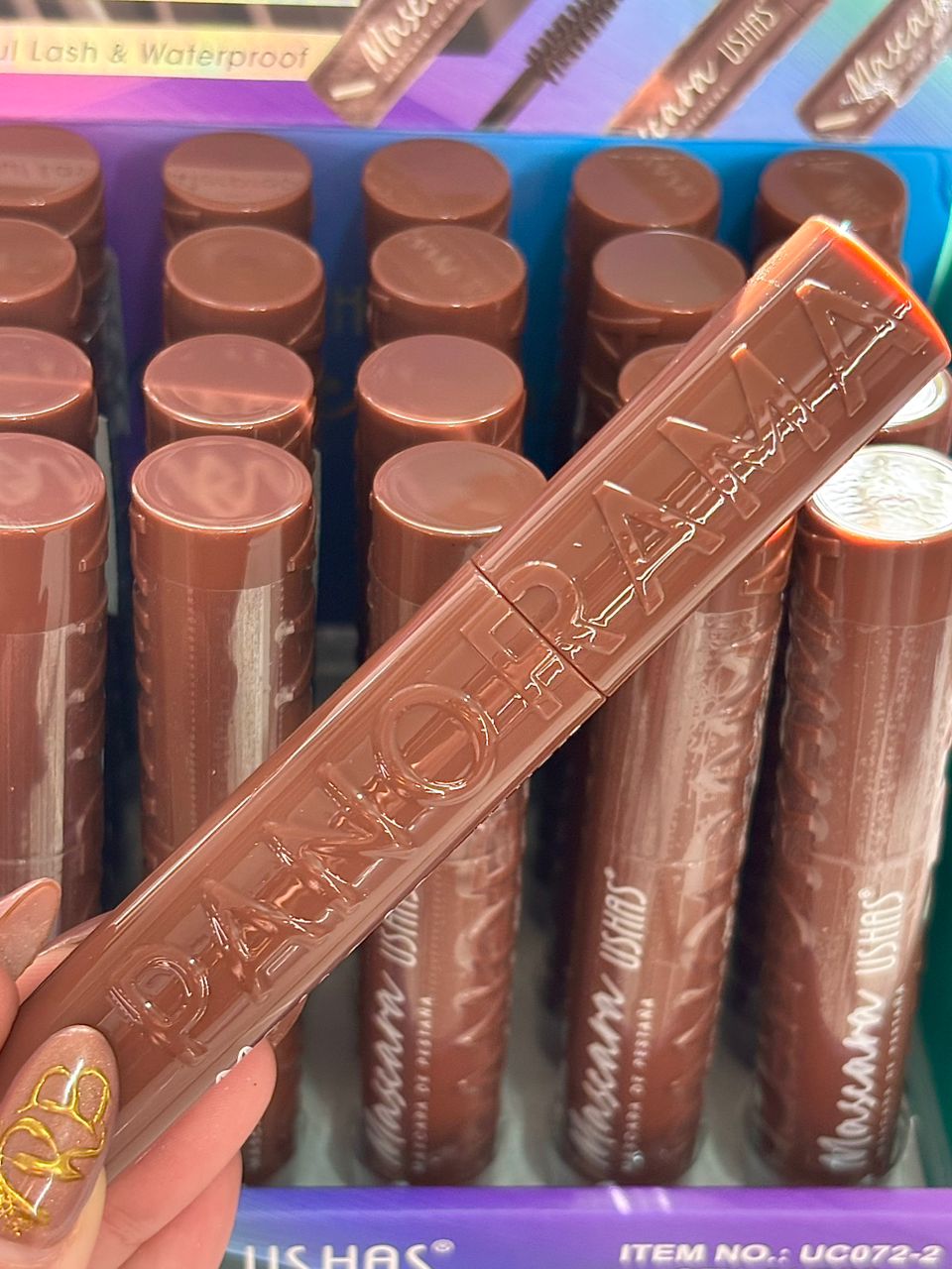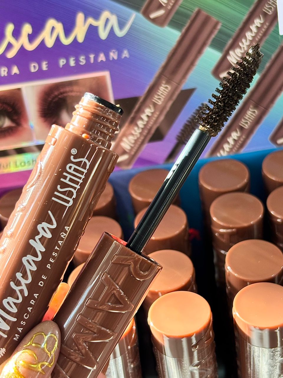 Alarga y brinda volumen a las pestañas, es lavable pero no se corre ni se riega. Da un color café mas natural. El display es X24 UND.